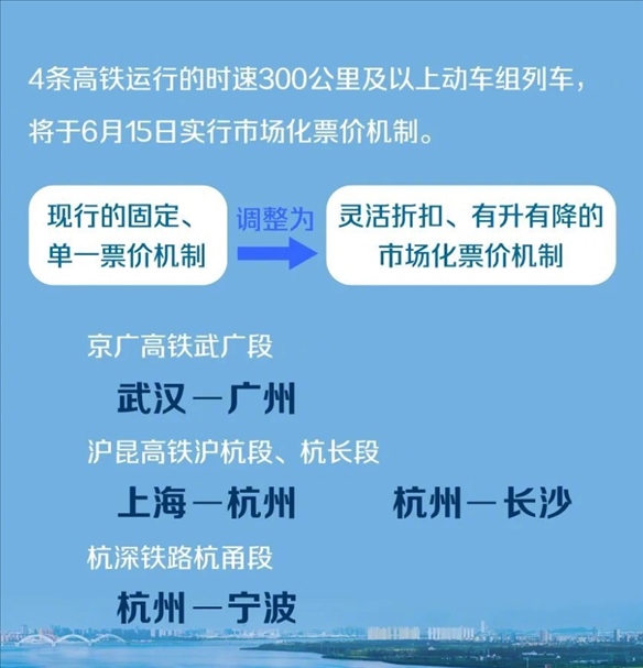 ·6月1日開售實(shí)行市場化票價(jià)機(jī)制的4條高鐵車票,最低55折。