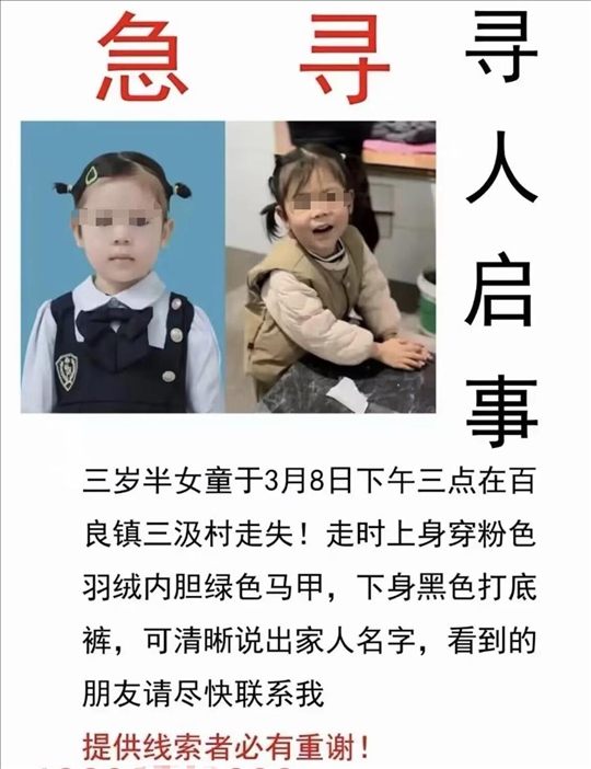 ·陜西渭南三歲半女童失蹤2月有余,當(dāng)?shù)鼐交貞?yīng):案件一直在辦理。