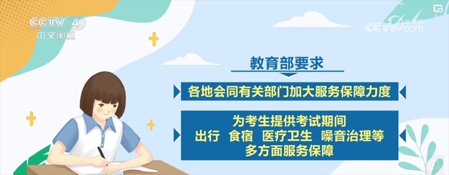 教育部要求各地會(huì)同有關(guān)部門加大服務(wù)保障力度,為考生提供考試期間出行、食宿、醫(yī)療衛(wèi)生、噪音治理等多方面服務(wù)保障。繼續(xù)做好殘疾人等特殊困難群體的考試服務(wù),為11?。▍^(qū))共15名盲人考生專門命制盲文試卷,為1.1萬余名殘障考生提供合理考試便利。?