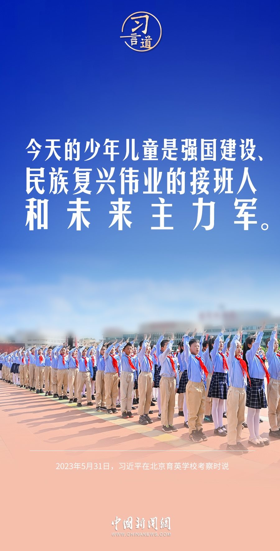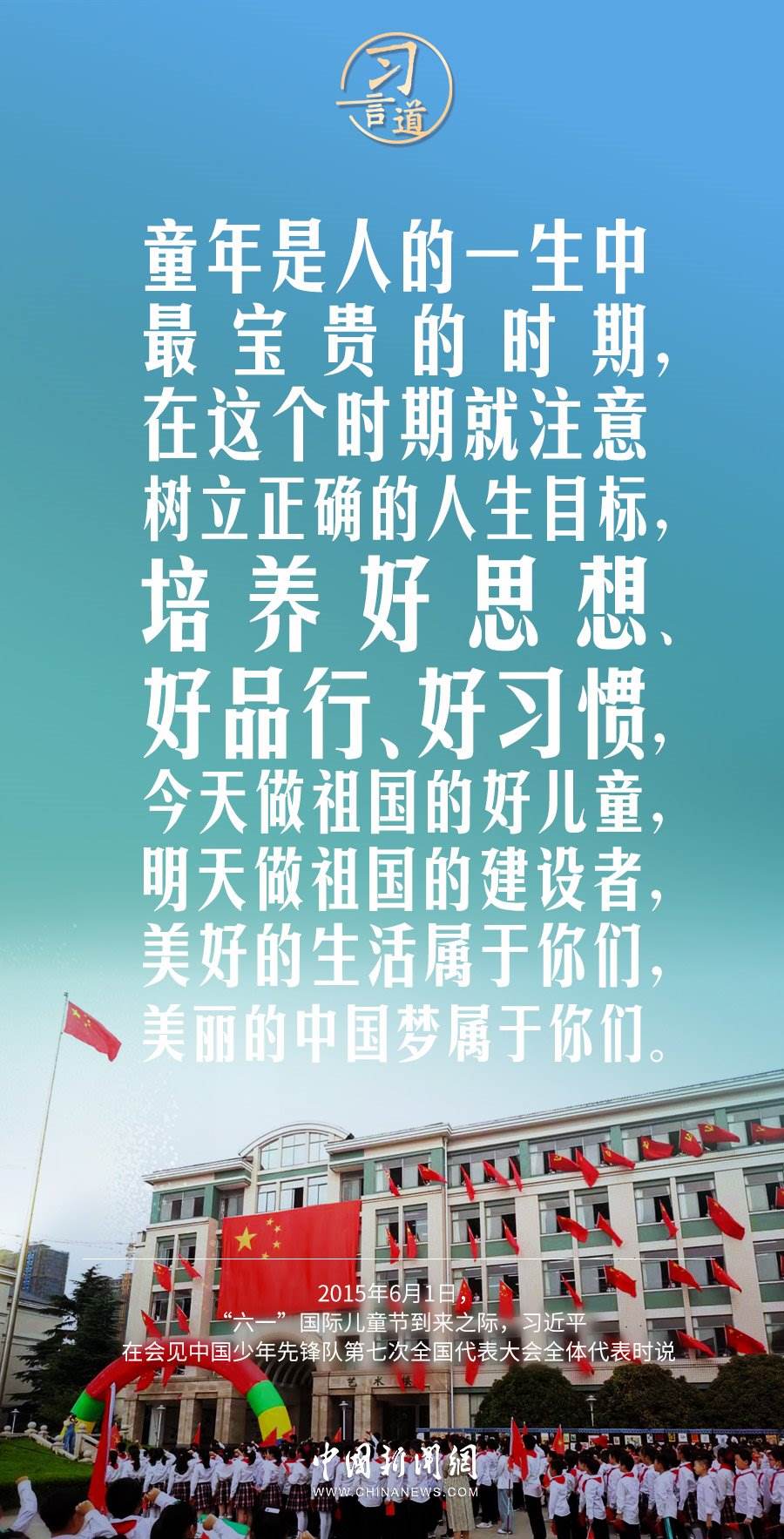 今天是“六一”國際兒童節(jié),習(xí)近平總書記曾在多個場合表達(dá)對少年兒童的關(guān)懷和期望,希望少年兒童從小立志向、有夢想。