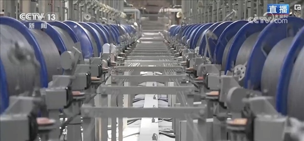 相對普通鋼簾線來說,這樣的鋼絲組成的鋼簾線強度更高,可以減少輪胎里面橡膠原料的使用,減輕輪胎整體的重量。這里的工作人員介紹,在鋼簾線制造過程中,工藝流程自動化程度低一直是行業(yè)“痛點”?,F(xiàn)在,企業(yè)通過人工智能、數(shù)字化,實現(xiàn)了從原材料進廠到成品出庫全流程的自動化生產(chǎn)。