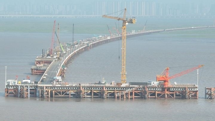 杭州灣南岸,千根樁基正朝海面深處進(jìn)發(fā)。這里是杭州灣跨海鐵路大橋,也是世界上在建長度最長的高速鐵路跨海大橋,這條線路,將串起寧波、嘉興、蘇州、南通等城市,大幅拉近長三角主要城市間的時空距離。