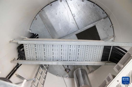 這是6月25日在哈薩克斯坦阿拉木圖州謝列克風(fēng)電場拍攝的風(fēng)機(jī)第一級平臺。白雪騏 攝