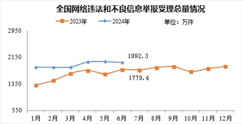 今年6月全國受理網(wǎng)絡(luò)違法和不良信息舉報1992.3萬件