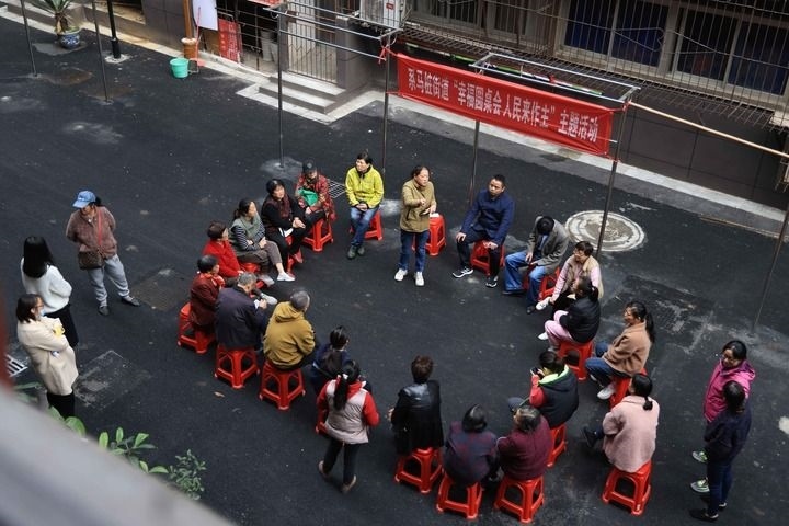 2021年11月20日,南昌市西湖區(qū)系馬樁街道在羅家塘48號市委黨校宿舍院開展“幸福圓桌會”。此次圓桌會主要圍繞轄區(qū)居民自治公約征集群眾意見,真正讓居民共同參與到社區(qū)治理當中。新華社發(fā)(馬悅 攝)