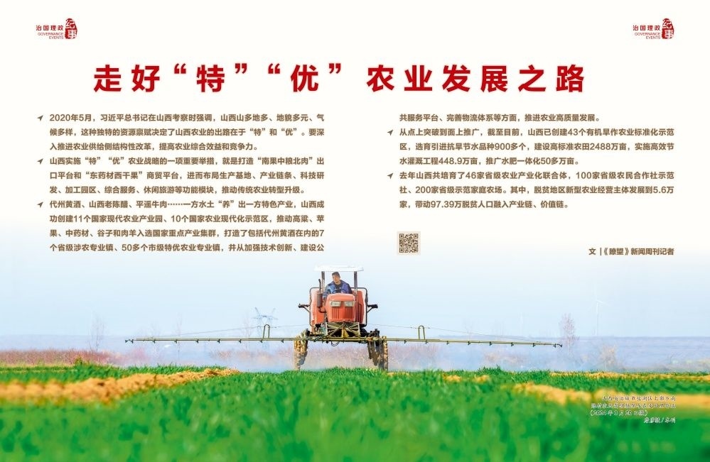 2020年5月,習(xí)近平總書記在山西考察時(shí)強(qiáng)調(diào),山西山多地多、地貌多元、氣候多樣,這種獨(dú)特的資源稟賦決定了山西農(nóng)業(yè)的出路在于“特”和“優(yōu)”。要深入推進(jìn)農(nóng)業(yè)供給側(cè)結(jié)構(gòu)性改革,提高農(nóng)業(yè)綜合效益和競(jìng)爭(zhēng)力。
