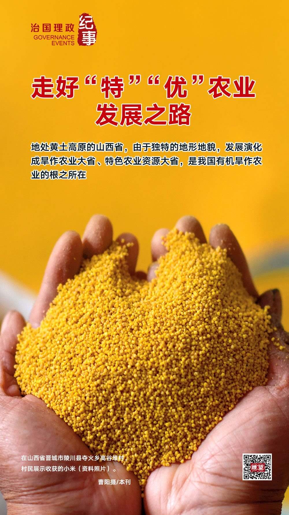◇2020年5月,習(xí)近平總書記在山西考察時(shí)強(qiáng)調(diào),山西山多地多、地貌多元、氣候多樣,這種獨(dú)特的資源稟賦決定了山西農(nóng)業(yè)的出路在于“特”和“優(yōu)”。要深入推進(jìn)農(nóng)業(yè)供給側(cè)結(jié)構(gòu)性改革,提高農(nóng)業(yè)綜合效益和競(jìng)爭(zhēng)力。