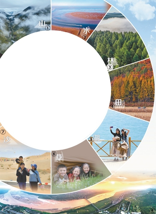 圖①:雨后的武夷山國家公園云霧繚繞。國家公園是我國自然生態(tài)系統(tǒng)中最重要、自然景觀最獨(dú)特、自然遺產(chǎn)最精華、生物多樣性最富集的部分,我國國家公園建設(shè)是生態(tài)文明建設(shè)中具有示范引領(lǐng)意義的工程。邱汝泉攝(新華社發(fā))圖②:山東東營市紅灘濕地旅游區(qū)生態(tài)濕地,生長在灘涂上的堿蓬等鹽生植物,如同一塊巨大的紅地毯。劉智峰攝(影像中國)圖③:河北承德市圍場(chǎng)滿族蒙古族自治縣塞罕壩國家森林公園。組建至今,塞罕壩機(jī)械林場(chǎng)營造人工林百萬畝,創(chuàng)造了荒原變林海的奇跡。劉滿倉攝(影像中國)圖④:黑龍江雞西密山市黑土地上種植的玉米。近年來,我國加強(qiáng)黑土地保護(hù),守護(hù)“耕地中的大熊貓”。孫樹寶攝(影像中國)圖⑤:游客在青海湖畔拍照。當(dāng)?shù)亓己玫纳鷳B(tài)環(huán)境和優(yōu)美的景色吸引了來自全國各地的大量游客。新華社記者 張 龍攝圖⑥:四川甘孜藏族自治州日通草原上,躲在帳篷里的小朋友享受假日生活。我國持續(xù)推進(jìn)草原生態(tài)保護(hù)修復(fù),穩(wěn)步提升草原生態(tài)功能。新華社記者 江宏景攝圖⑦:新疆博湖縣博斯騰湖畔的艾勒遜烏拉沙漠,游客正帶著孩子在游玩。近年來,我國推進(jìn)科學(xué)化、規(guī)?;紊?,重點(diǎn)治理區(qū)實(shí)現(xiàn)“沙進(jìn)人退”到“綠進(jìn)沙退”的歷史性轉(zhuǎn)變。年 磊攝(人民視覺)圖⑧:黃河陜西潼關(guān)段景觀。近年來,我國持續(xù)推動(dòng)黃河流域生態(tài)保護(hù)和高質(zhì)量發(fā)展,流域生態(tài)環(huán)境持續(xù)明顯向好,讓黃河成為造福人民的幸福河。王生暉攝(人民視覺)