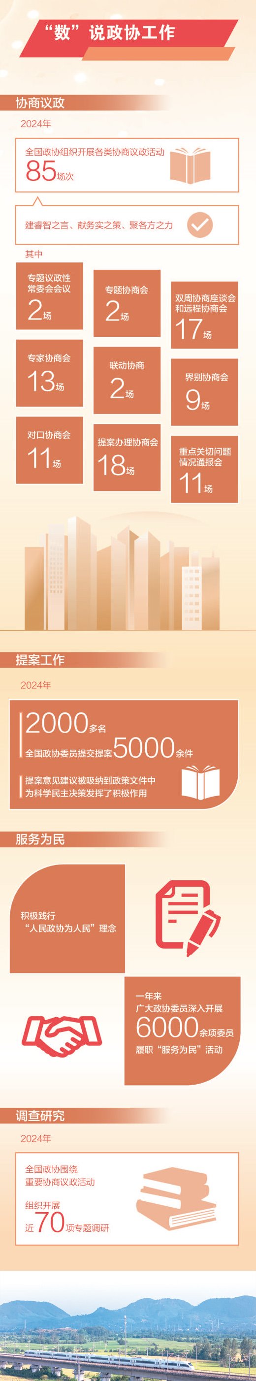 人工智能、綠色低碳、新質(zhì)生產(chǎn)力、文化遺產(chǎn)保護(hù)、人口高質(zhì)量發(fā)展、金融高質(zhì)量發(fā)展……協(xié)商議題緊扣“國之大者”和民之關(guān)切;專題議政性常委會(huì)會(huì)議、專題協(xié)商會(huì)、雙周協(xié)商座談會(huì)、遠(yuǎn)程協(xié)商會(huì)、專家協(xié)商會(huì)、界別協(xié)商會(huì)、提案辦理協(xié)商會(huì)……協(xié)商形式豐富多樣,過去一年,全國政協(xié)組織開展各類協(xié)商議政活動(dòng)85場次。一年來,全國政協(xié)把協(xié)商議政工作放到黨和國家工作大局中精準(zhǔn)定位、科學(xué)謀劃,聚焦推進(jìn)中國式現(xiàn)代化,建睿智之言、獻(xiàn)務(wù)實(shí)之策、聚各方之力,協(xié)商議政質(zhì)量和成效不斷提升。
