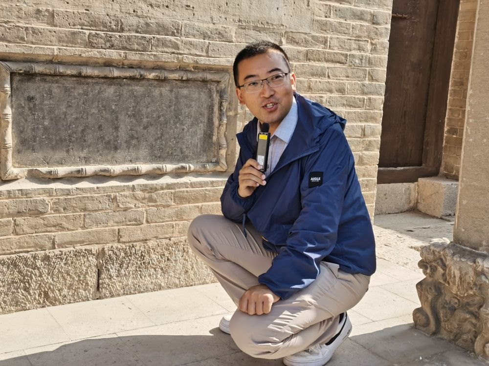 從“古建粉”到從業(yè)者,“80后”楊杰用自己的創(chuàng)業(yè)經(jīng)歷,展現(xiàn)出傳統(tǒng)文化在新時(shí)代的實(shí)踐可能。他創(chuàng)立的晉行記研學(xué)中心,聘請(qǐng)專業(yè)人士深入講解,為喜愛(ài)古建的游客提供“沉浸式”研學(xué)體驗(yàn)。這是2023年5月20日,楊杰帶領(lǐng)游客在山西長(zhǎng)治參觀淳化寺古跡。