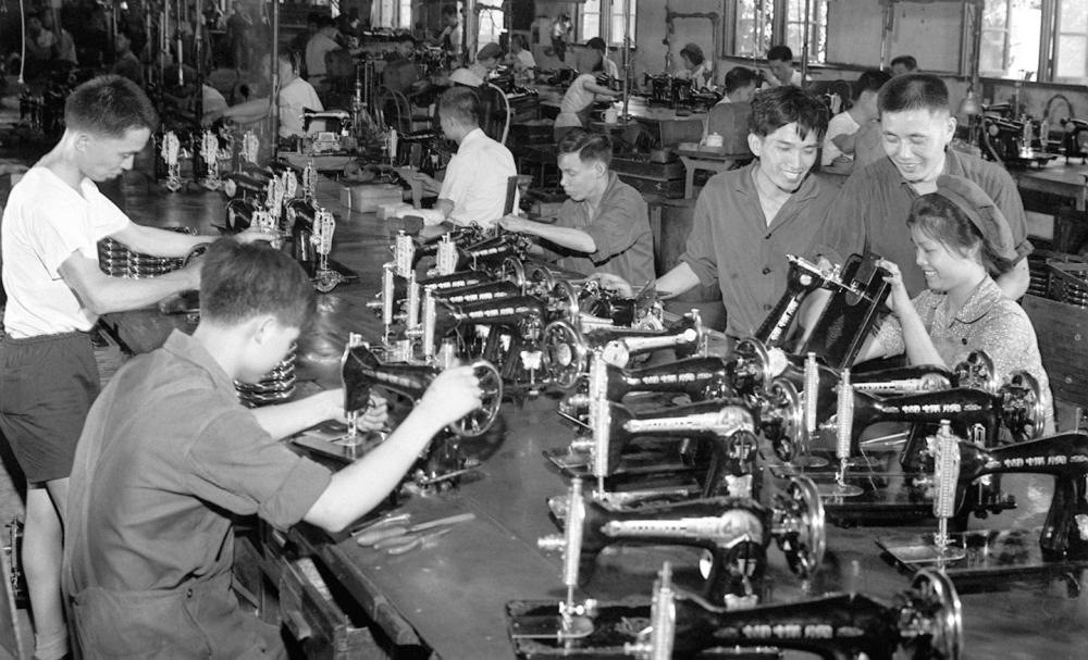 1970年,越南實(shí)習(xí)生在上海東方紅縫紉機(jī)廠(chǎng)學(xué)習(xí)裝配技術(shù)。