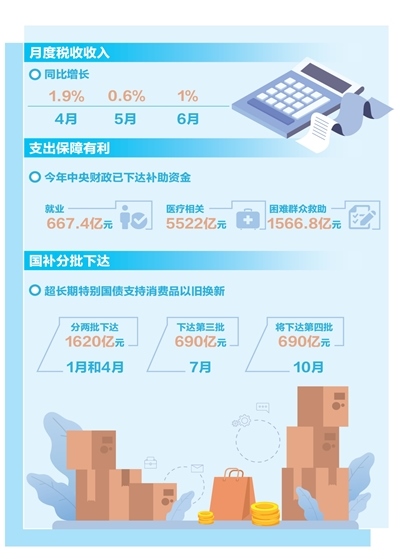收入回升,支出有力,為落實(shí)更加積極的財(cái)政政策提供堅(jiān)實(shí)資金保障?!皣@提振消費(fèi)、穩(wěn)就業(yè)穩(wěn)經(jīng)濟(jì)等重點(diǎn)領(lǐng)域,財(cái)政部門加強(qiáng)財(cái)政政策供給和資金撥付管理,確保盡早發(fā)揮政策效果。”財(cái)政部預(yù)算司一級巡視員、政府債務(wù)研究和評估中心主任李大偉說。