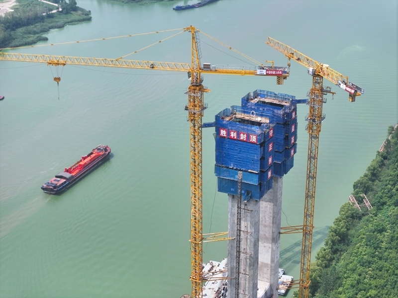 滬渝蓉高鐵跨京杭運(yùn)河斜拉橋主塔封頂