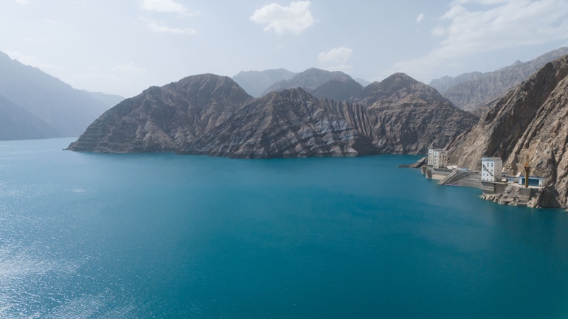 這是8月7日拍攝的阿爾塔什水電站(無(wú)人機(jī)照片)。