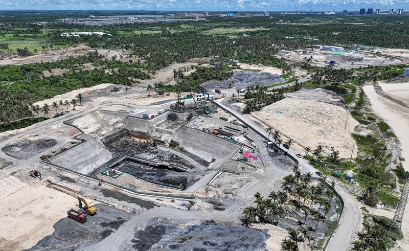 9月5日拍攝的建設(shè)中的海南商業(yè)航天發(fā)射場二期項目,遠處是海南商業(yè)航天發(fā)射場(一期)和文昌航天發(fā)射場(無人機照片)。