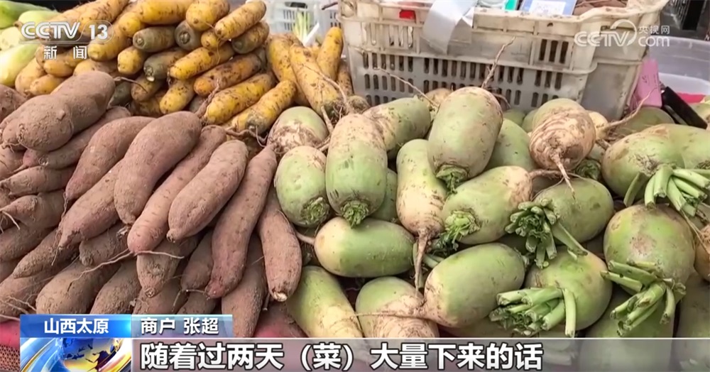 商戶張超稱:“芥菜今年一塊錢一斤,白蘿卜也是一塊錢一斤,隨著過兩天菜大量下來的話,價格還會便宜點?!?/p>