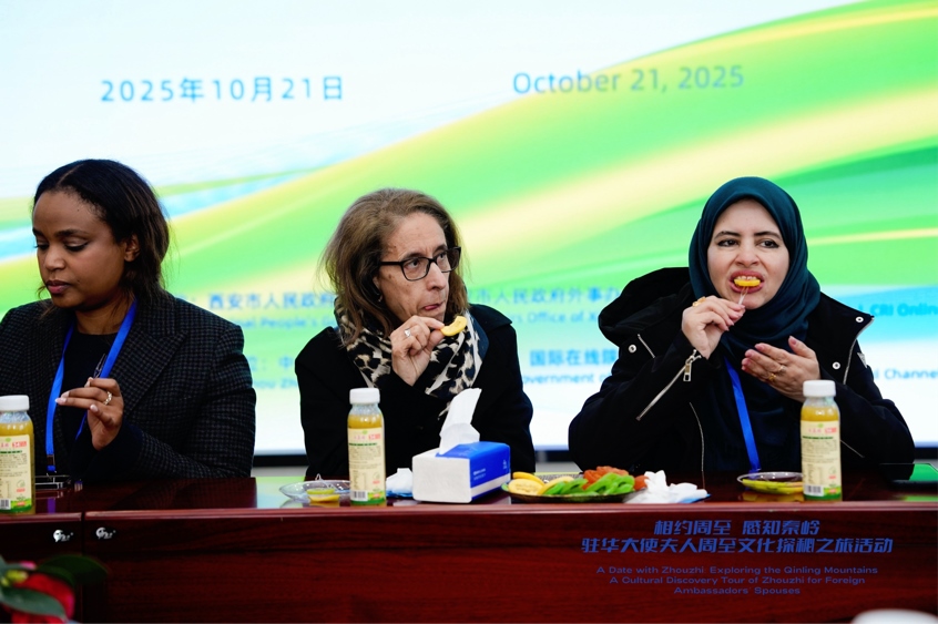 駐華大使夫人品嘗著不同品種的獼猴桃以及各式各樣的獼猴桃深加工食品,紛紛稱贊其細(xì)膩的口感、獨(dú)特的風(fēng)味和濃郁的果香?!斑@不僅是一次味覺的享受,更是一次對中國鄉(xiāng)村產(chǎn)業(yè)振興的直觀感受。”摩洛哥駐華大使夫人表示,“我非常期待后續(xù)可以和周至合作,因?yàn)槟β甯绾芟矚g這種水果,我也希望可以在這里學(xué)到一些產(chǎn)業(yè)發(fā)展的知識,并把這些知識帶回我們國家?!?/p>