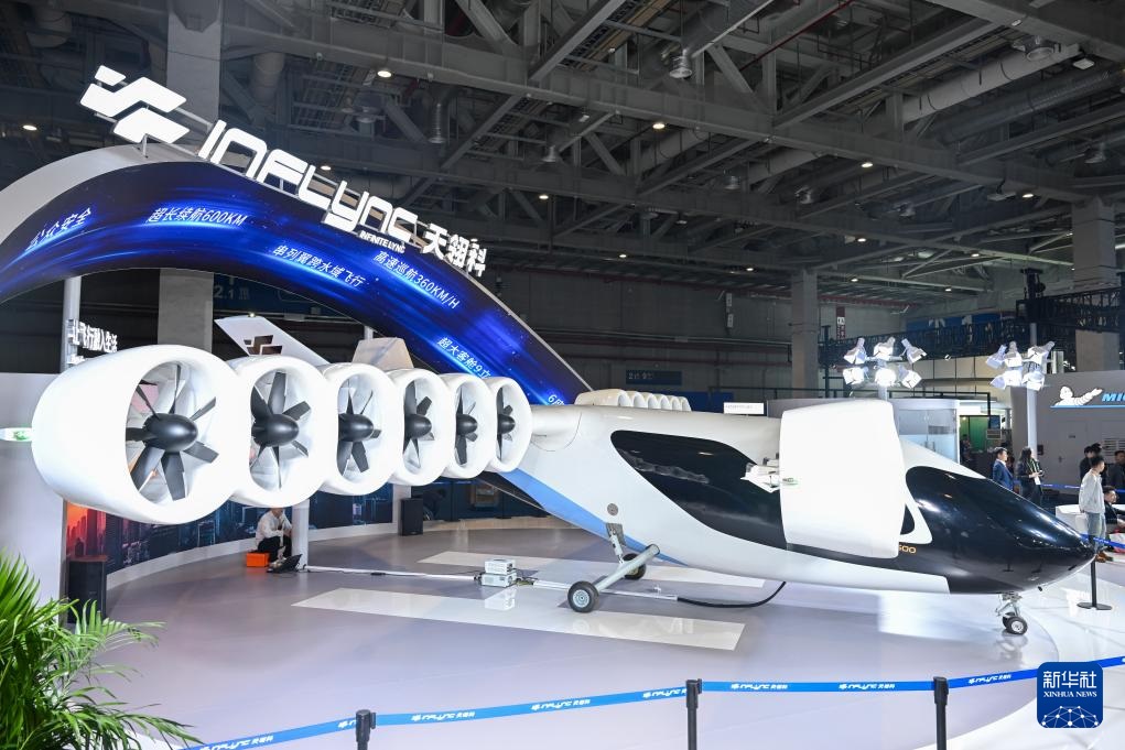 11月6日在進博會汽車及智慧出行展區(qū)天翎科展臺拍攝的L600全尺寸傾轉涵道翼eVTOL。這是該產品全球首發(fā)。