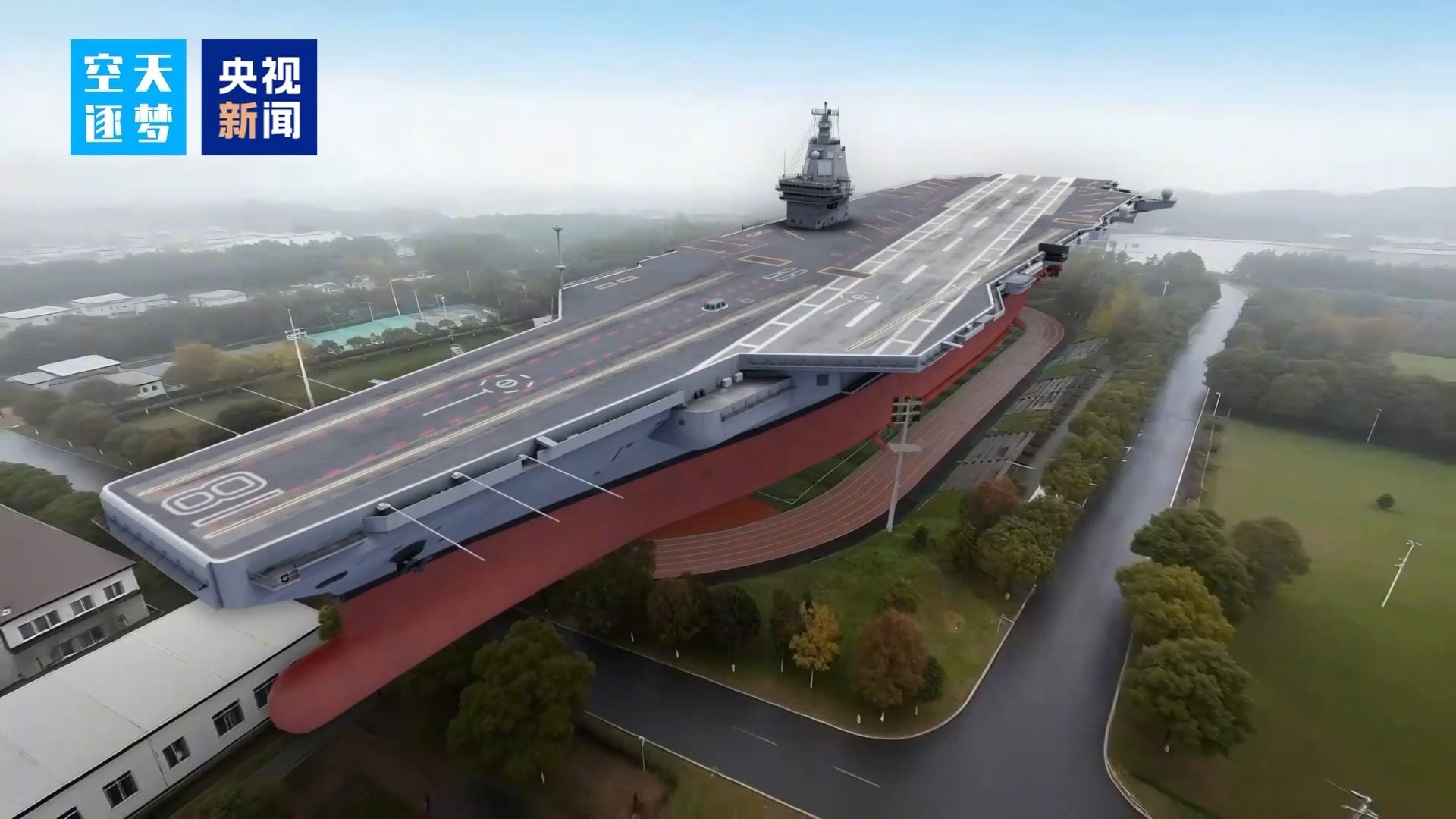 四年前,我們?cè)臄z山東艦,但鏡頭未能充分展現(xiàn)其五萬噸的磅礴體量。如今,福建艦更大,如何讓人直觀感受?我們選擇將它“置于”陸地,在熟悉場(chǎng)景中體會(huì)其宏偉。
