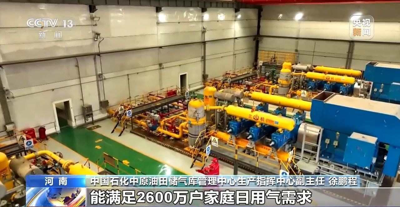 中國石化中原油田儲氣庫管理中心生產(chǎn)指揮中心副主任 徐鵬程:入冬前,中原油田儲氣庫群完成注氣儲備9.4億立方米,較去年多儲備1.2億立方米,達(dá)到歷史最高水平。在用氣高峰期,能滿足2600萬戶家庭的日用氣需求。