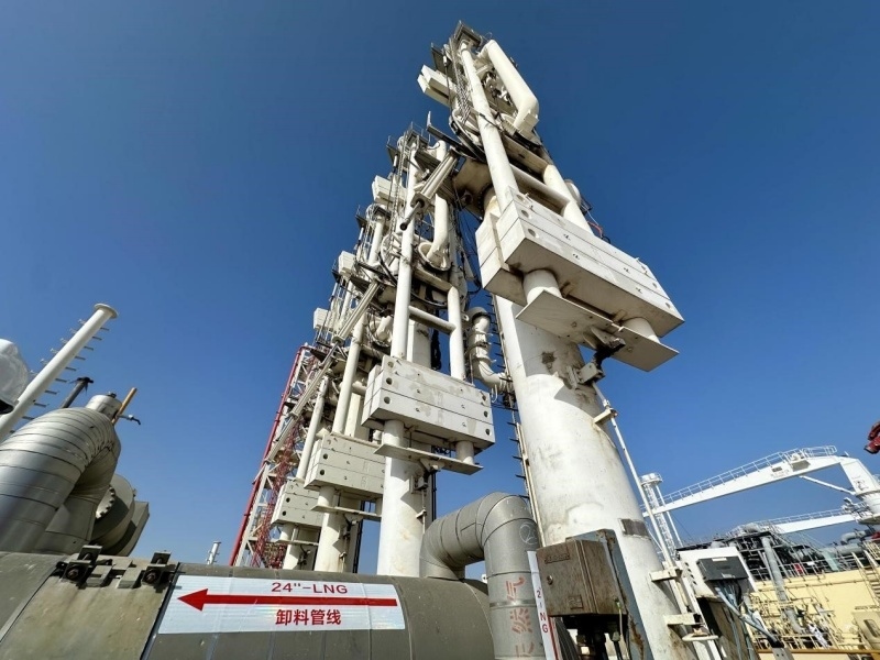 碼頭的LNG卸料臂(央廣網記者 顧煬威 攝)