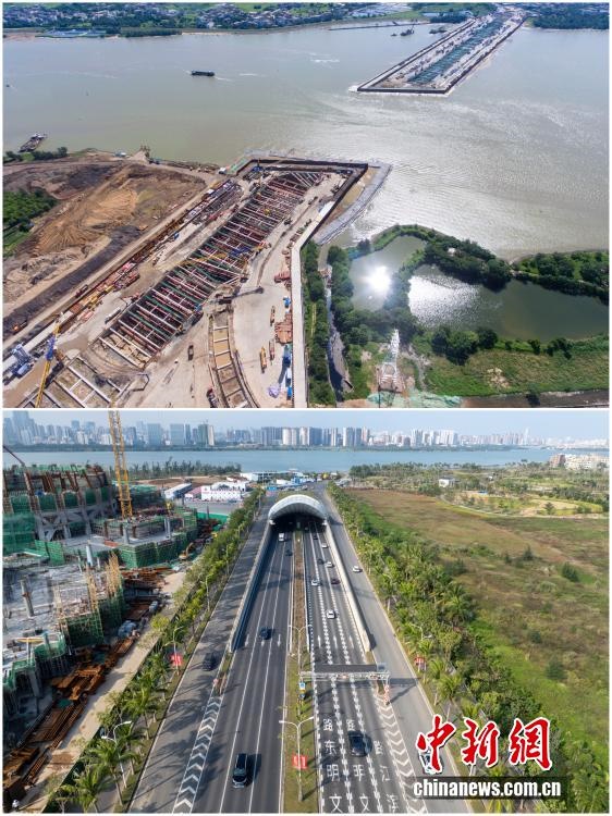 2025年12月18日,海南自由貿(mào)易港正式啟動全島封關。近年來,海南自貿(mào)港建設在利好政策帶動下不斷刷新“自貿(mào)港速度”,一個個重大項目、重點園區(qū)拔地而起,直觀呈現(xiàn)海南自貿(mào)港的蓬勃生機。這里正成為中國對外開放的新前沿、互利合作的新熱土和推動經(jīng)濟全球化的新引擎。上資料圖為2019年6月19日的海口文明東越江隧道施工現(xiàn)場,下資料圖為2025年12月7日已建成通車的海南省首條跨越南渡江隧道——文明東隧道。(拼版圖,無人機照片)