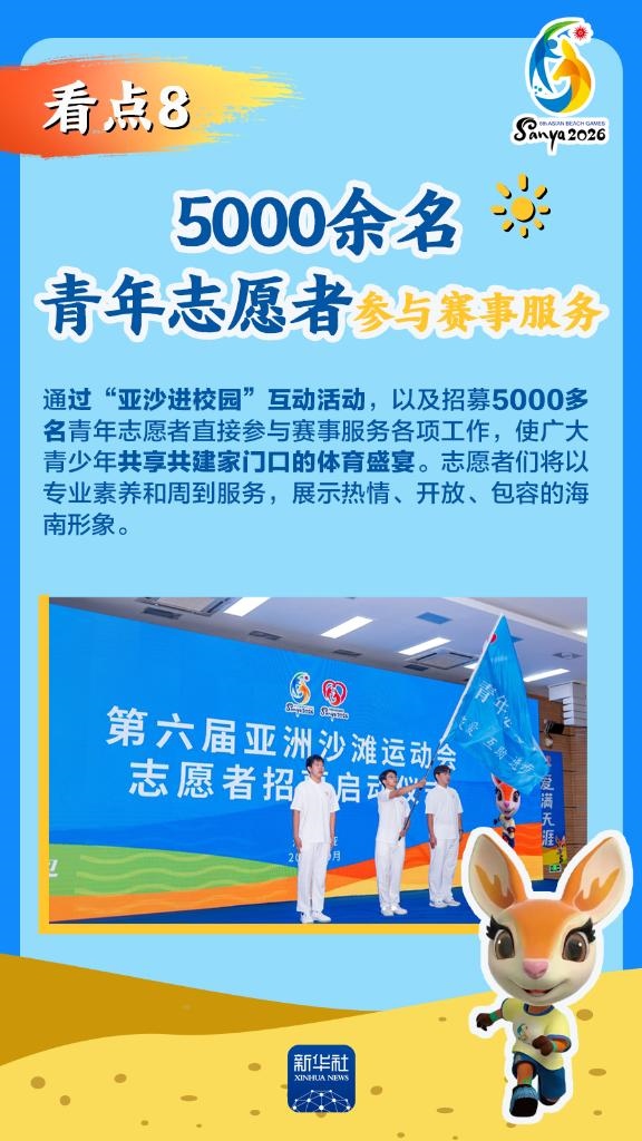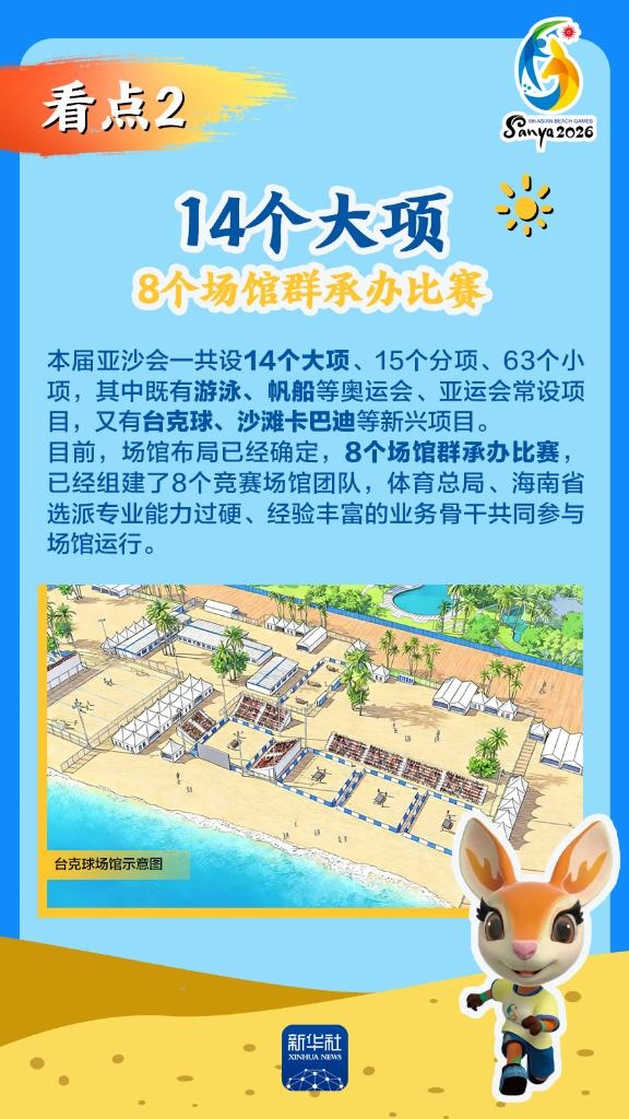 第六屆亞洲沙灘運(yùn)動(dòng)會(huì)(以下簡稱“亞沙會(huì)”)將于2026年4月22日至30日在海南三亞舉行,賽事歷時(shí)9天。作為海南自由貿(mào)易港封關(guān)運(yùn)作后迎來的首個(gè)國際大型綜合性體育盛事,亞沙會(huì)都有哪些看點(diǎn)?為何值得期待?國新辦12日發(fā)布會(huì)做了詳細(xì)介紹,一起來看。