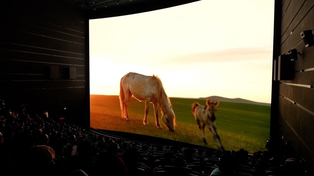 近日,全球首部生肖動(dòng)物巨幕電影《馬到功成》在上??萍拣^內(nèi)巨幕影院舉行首映。該屏幕融合4K、3D、高幀率等多項(xiàng)技術(shù),同時(shí)也應(yīng)用了中影集團(tuán)新一代的CLED透聲屏方案。