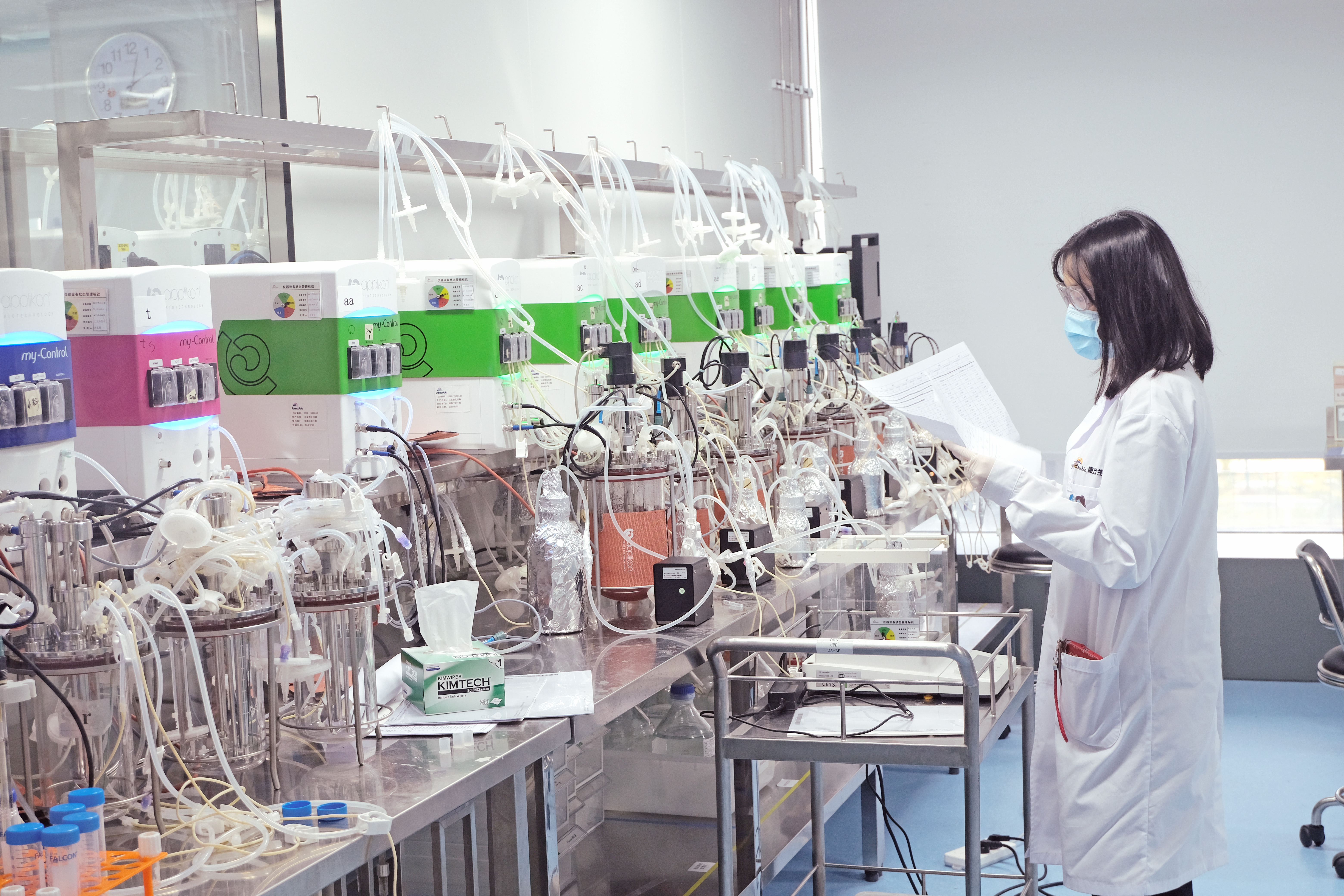 康方生物細胞工藝科學家正在進行實驗。新華網(wǎng)發(fā)(受訪者供圖)