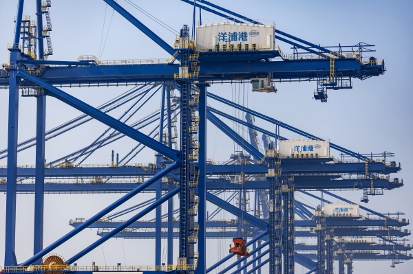在海南島西北端的洋浦港,高大的岸橋整齊排列,正繁忙吊運運往來貨輪上的集裝箱,展現(xiàn)出一幅“陸海聯(lián)動”的生動圖景。