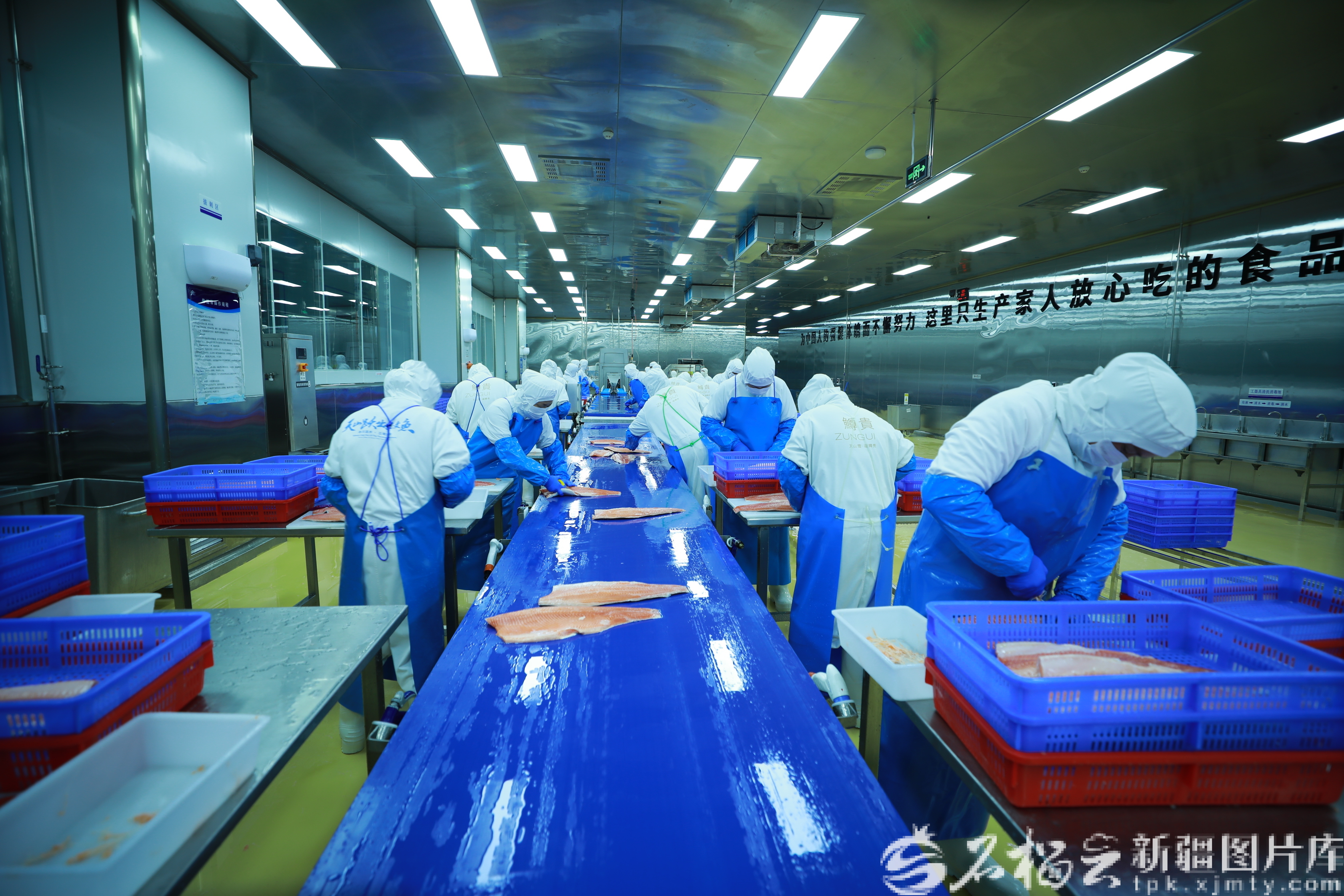 新疆天蘊有機農(nóng)業(yè)有限公司三文魚深加工廠,工人在加工三文魚。趙學(xué)林?jǐn)z(資料圖)