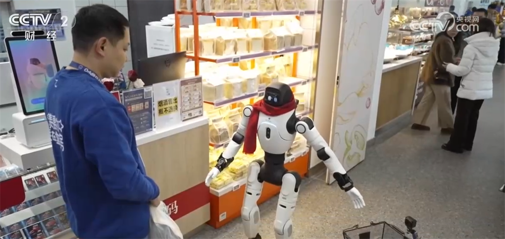 這批剛上線的具身智能機器人助理還具備語音交互、智能結(jié)算指引等功能,消費者挑選完商品后,機器人可以引導(dǎo)至就近的自助結(jié)算機,還能提醒各類新春促銷活動,全方位提升市民購物體驗。