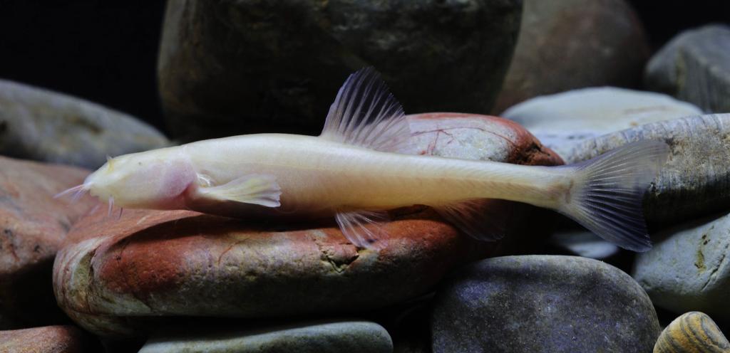 “納雍盲高原鰍”被發(fā)現(xiàn)于貴州省納雍縣張家灣鎮(zhèn)的一處地下溶洞中。作為典型的穴居魚類,該物種演化出鮮明的洞穴適應性特征:個體體形偏小,鱗片已完全退化消失,身體呈透明淡粉色;眼睛高度退化,部分個體僅殘留細小的黑色眼點;同時,其附肢適度延長、感覺系統(tǒng)發(fā)達,以此適應黑暗、封閉的地下環(huán)境。通過形態(tài)學對比與分子生物學檢測證實,它被確認為從未被記載的新種。