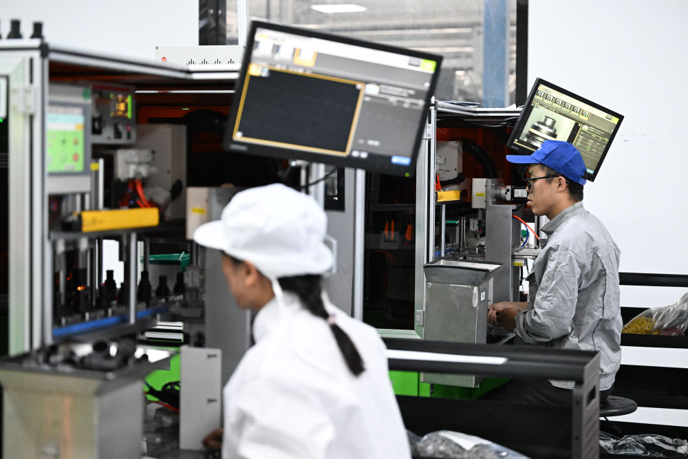 工作人員在天津鵬翎集團股份有限公司生產(chǎn)車間操作半自動生產(chǎn)設(shè)備生產(chǎn)汽車膠管接頭。新華社記者 趙子碩 攝