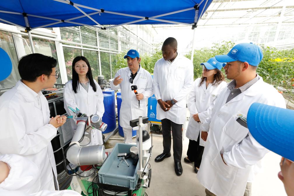 2024年5月22日,“中國—FAO(聯(lián)合國糧農(nóng)組織)南南合作拉丁美洲和加勒比地區(qū)農(nóng)村生計(jì)改善和糧食體系轉(zhuǎn)型能力建設(shè)活動(dòng)”學(xué)員赴江蘇省農(nóng)業(yè)科學(xué)院開展交流。新華社發(fā)(江蘇省農(nóng)業(yè)科學(xué)院供圖)