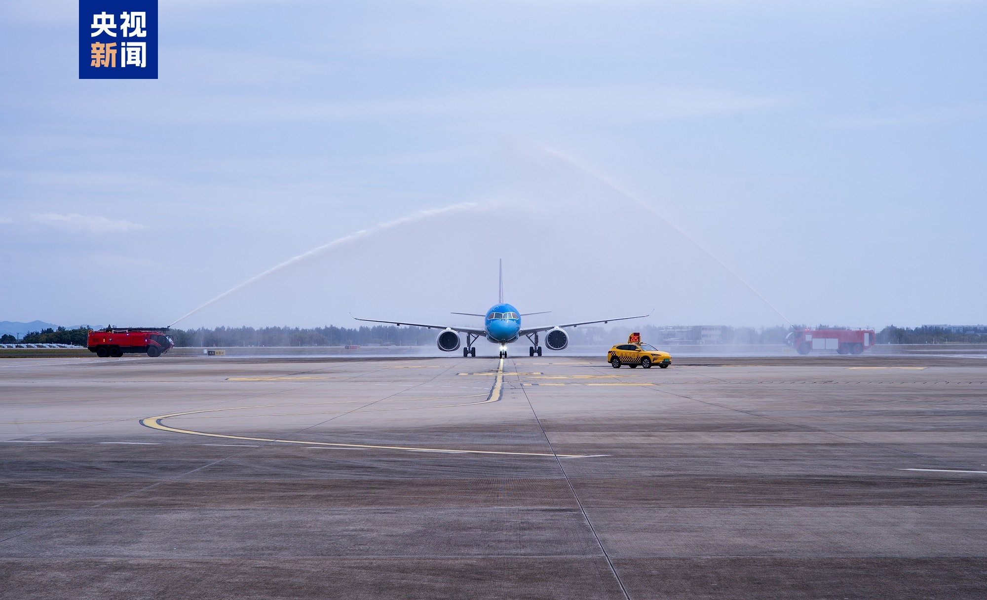 12時5分左右,飛機(jī)平穩(wěn)降落在溫州龍灣國際機(jī)場,緩緩穿過象征民航最高禮儀的“水門”,標(biāo)志著國產(chǎn)大飛機(jī)C919在這條新航線上的常態(tài)化運(yùn)營正式拉開序幕,接下來計(jì)劃每日執(zhí)飛廣州至溫州兩個往返航班。