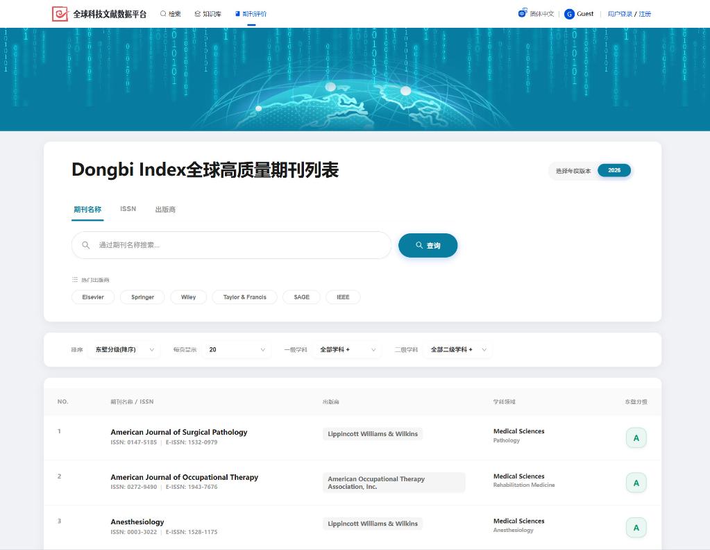 “東壁指數(shù)”全球高質(zhì)量期刊列表已上線,可免費檢索下載。(網(wǎng)站截圖)
