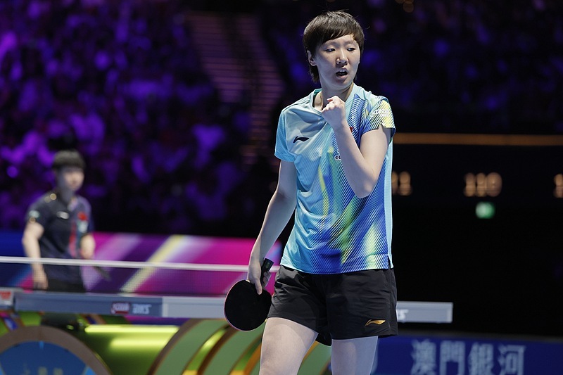 北京時間4月5日晚,國際乒聯(lián)單打世界杯女單決賽,孫穎莎4-1戰(zhàn)勝王曼昱,衛(wèi)冕冠軍,實現(xiàn)該項賽事“三連冠”。(總臺記者 劉冰清)