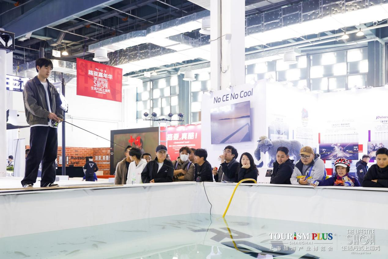 路亞釣魚互動(dòng)體驗(yàn)區(qū),觀眾現(xiàn)場(chǎng)體驗(yàn)垂釣操作。主辦方供圖