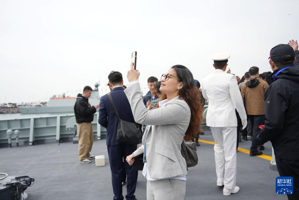 4月23日,臺灣同胞參加海軍成立77周年紀念日艦艇開放活動。新華社記者 李杰 攝