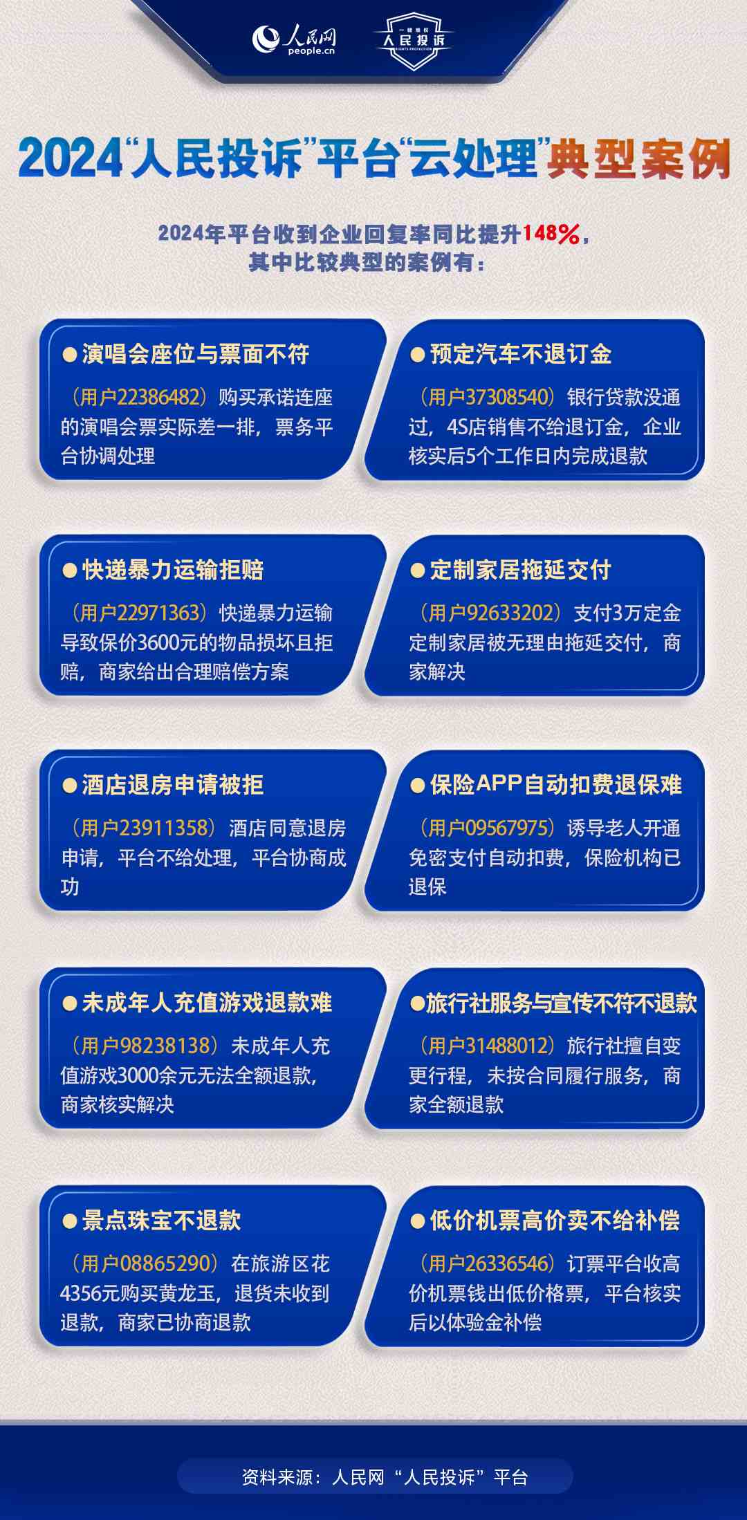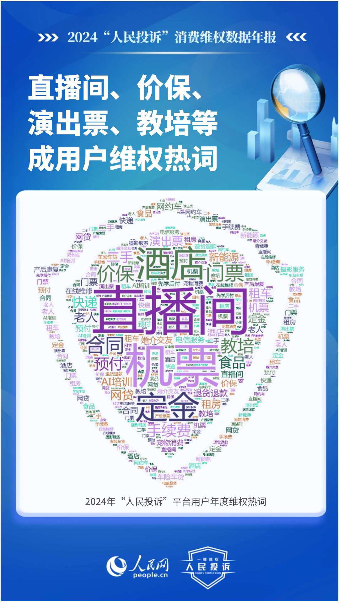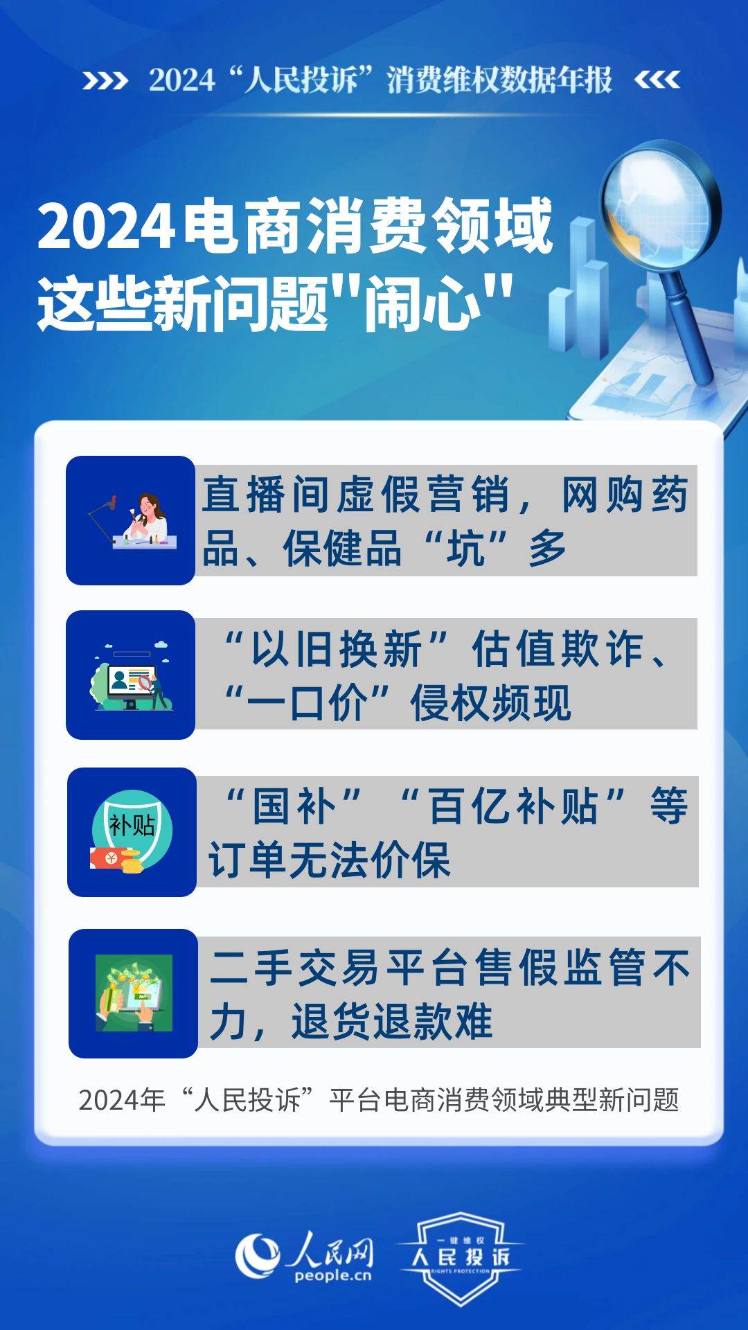 2024年,旅游消費持續(xù)火爆,以舊換新“換”出消費新活力,直播電商“品質(zhì)化”轉(zhuǎn)型,新能源汽車購銷兩旺……在消費市場熱力持續(xù)提升的背景下,旅游產(chǎn)品退訂難,電商促銷虛假價保,直播間營銷違規(guī),車險車貸服務欺詐,AI培訓貨不對板等消費侵權(quán)問題引發(fā)廣泛關注。“人民投訴”發(fā)布年報帶您回顧這一年來,平臺消費維權(quán)熱點和入駐企業(yè)積極處理糾紛的舉措。