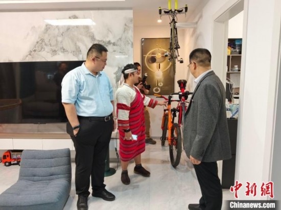 圖為沙部·魯比帶領(lǐng)親友參觀新房。張廣權(quán) 攝