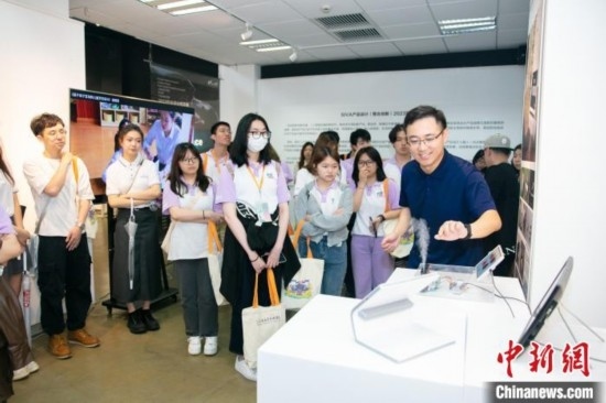當日,香港大學(xué)生參觀了松江廣富林遺址公園后,來到上海視覺藝術(shù)學(xué)院與該校學(xué)生結(jié)伴交流,參觀該校設(shè)計學(xué)院和新媒體藝術(shù)學(xué)院畢業(yè)作品展。