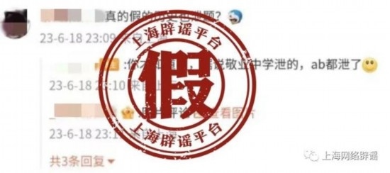 上海辟謠平臺(tái)還了解到,經(jīng)網(wǎng)信部門聯(lián)合公安核查,相關(guān)傳言源自參加中考的未成年人,當(dāng)事人承認(rèn)其發(fā)布的內(nèi)容并無證據(jù),只是臆測。相關(guān)部門已對(duì)其父母進(jìn)行了教育。