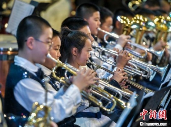 該交響管樂團(tuán)成立于2014年,平均年齡10歲,是一支非常年輕有朝氣的隊伍。中新網(wǎng)記者 劉新 攝