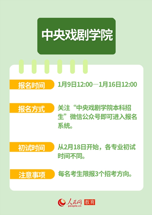 人民網(wǎng)北京1月12日電 近日,全國多所高校發(fā)布藝術(shù)類本科招生簡章,并明確藝考報(bào)名及初試時(shí)間。作為“新政”落地后的首次考試,2024年的“新藝考”備受關(guān)注。