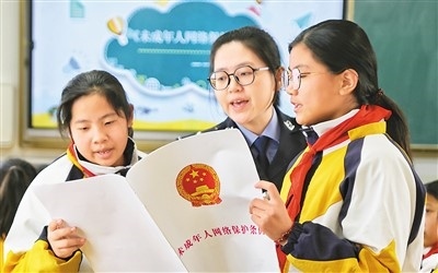 江蘇省海安市公安局城西派出所民警向小學(xué)生講解《未成年人網(wǎng)絡(luò)保護條例》。周 強攝(人民圖片)