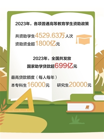 《2023年中國學(xué)生資助發(fā)展報(bào)告》顯示,2023年,政府、高校及社會(huì)的各項(xiàng)普通高等教育學(xué)生資助政策共資助學(xué)生4529.63萬人次,資助資金1854.38億元。