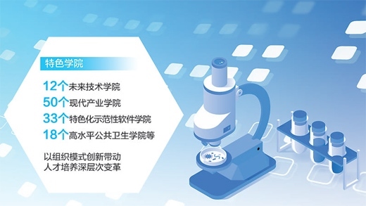 高東鋒:新時代以來,高等教育戰(zhàn)線積極服務國家戰(zhàn)略需要,體系化推進新工科、新醫(yī)科、新農(nóng)科、新文科建設,在教育教學的組織模式、培養(yǎng)機制、內(nèi)容方法、理論實踐等方面持續(xù)深化改革。聚焦戰(zhàn)略性新興領域和急需領域,布局建設了12個未來技術學院、50個現(xiàn)代產(chǎn)業(yè)學院、33個特色化示范性軟件學院、18個高水平公共衛(wèi)生學院等特色學院,分批布局45個國家產(chǎn)教融合創(chuàng)新平臺,有針對性、有組織地開展人才培養(yǎng),取得積極進展,牽引帶動高等教育的全方位、全過程、全要素改革。