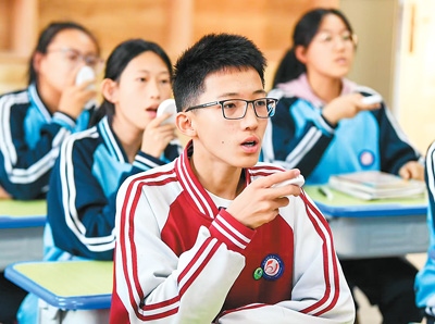 昆都侖區(qū)一所中學(xué)的學(xué)生使用英語(yǔ)聽說學(xué)習(xí)平臺(tái)進(jìn)行練習(xí)。